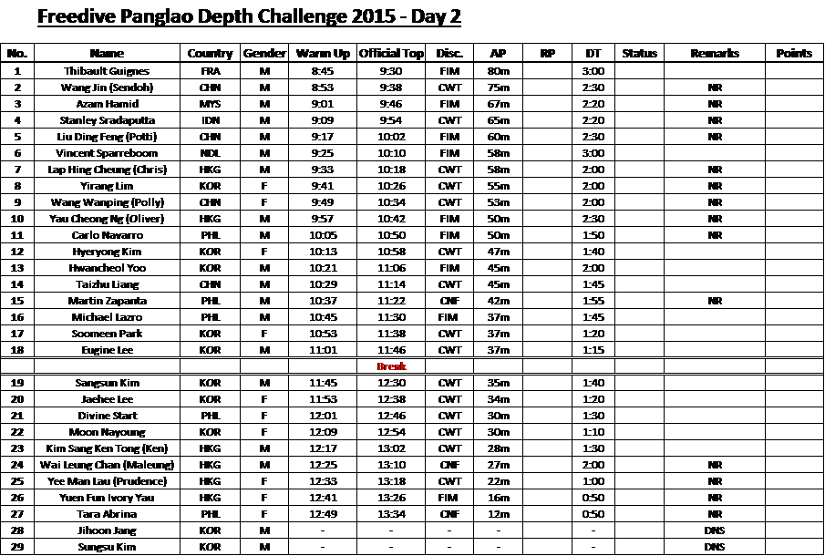 Sendoh Wang from China took first place for the men and coming events revealed that his great potential in deep diving made him a returning guest on the podium many more times. Polly Wang, the first female Freediver from China to pass the 50m depth mark, took gold for the women.