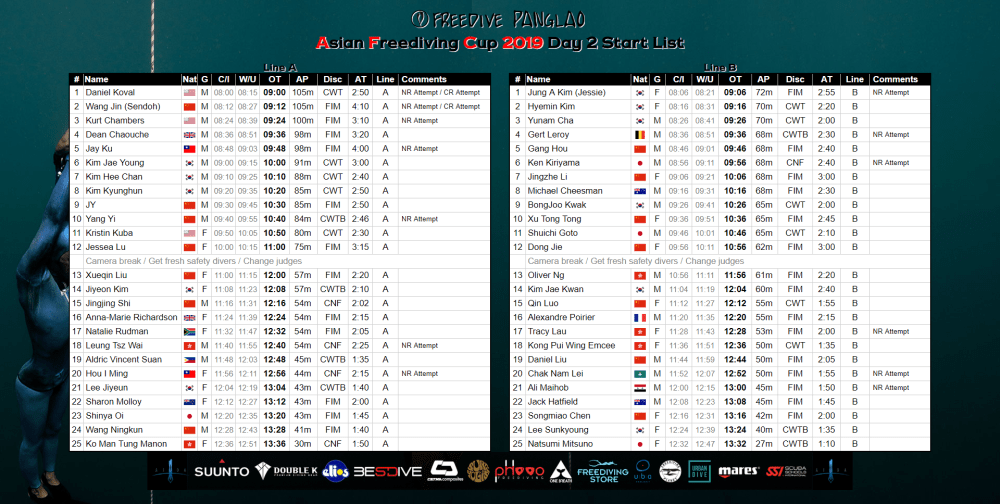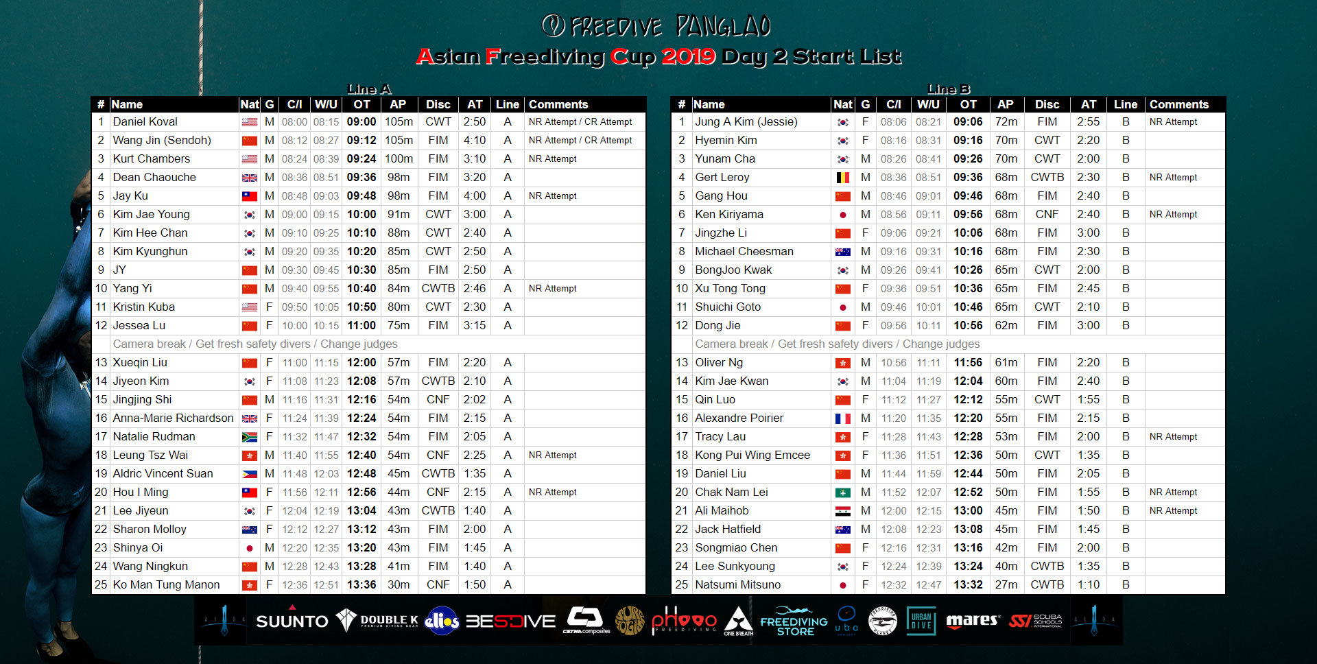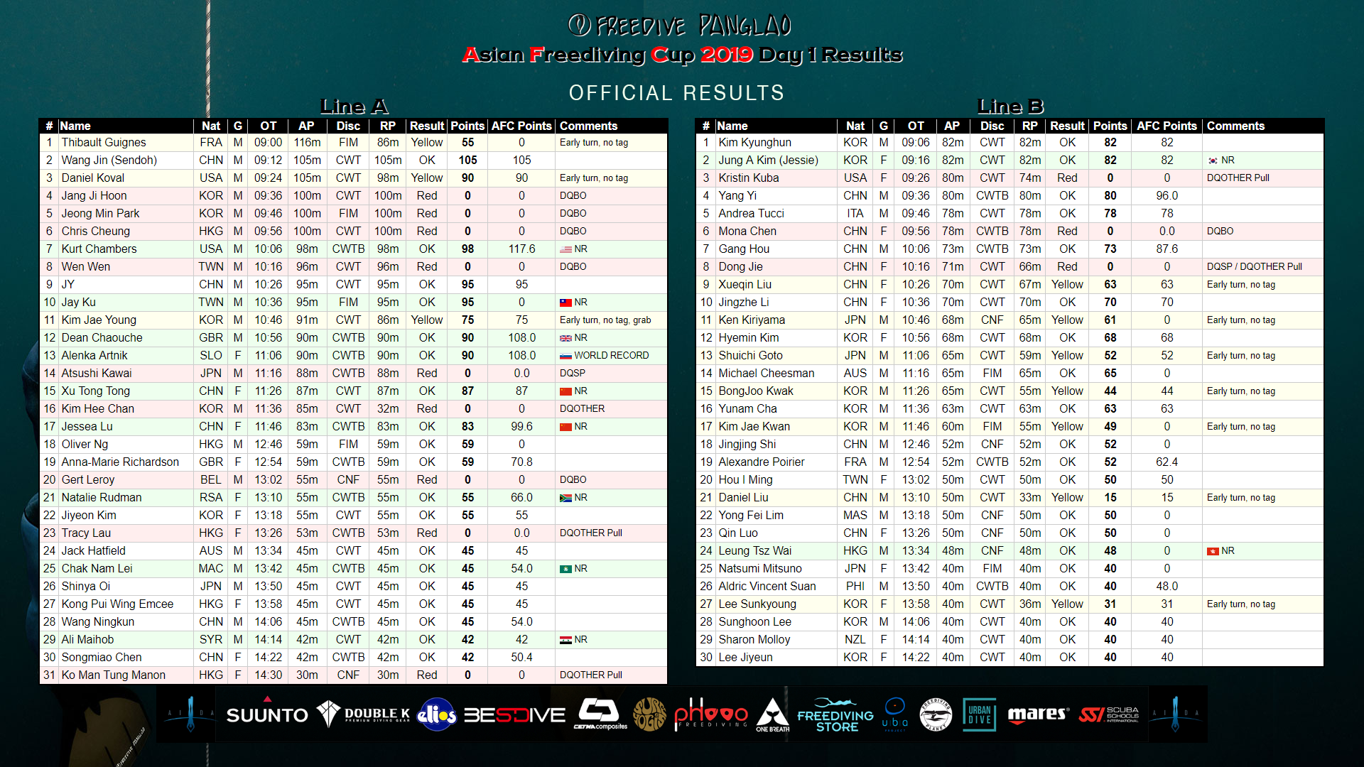 2019 Official results day one and start list for day two Posted by Asian Freediving Cup on June 9, 2019November 24, 2020 Share this: Click to share on X (Opens in new window) X Click to share on Facebook (Opens in new window) Facebook Like Loading...