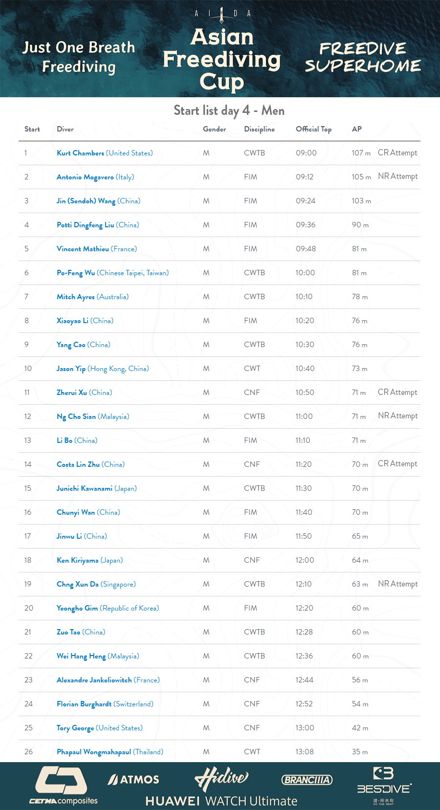 Uncategorized Start list for day four of AIDA Asian Freediving Cup Posted by Asian Freediving Cup on June 12, 2023June 13, 2023 Another exciting day coming up! Photo by TaiSheng. Sponsors of AIDA Asian Freediving cup 2023: CETMA Composites BESTDIVE HIDIVE (China) Huawei WATCH Ultimate ATMOS BRANCIIIA Share this: Click to share on X (Opens in new window) X Click to share on Facebook (Opens in new window) Facebook Like Loading...