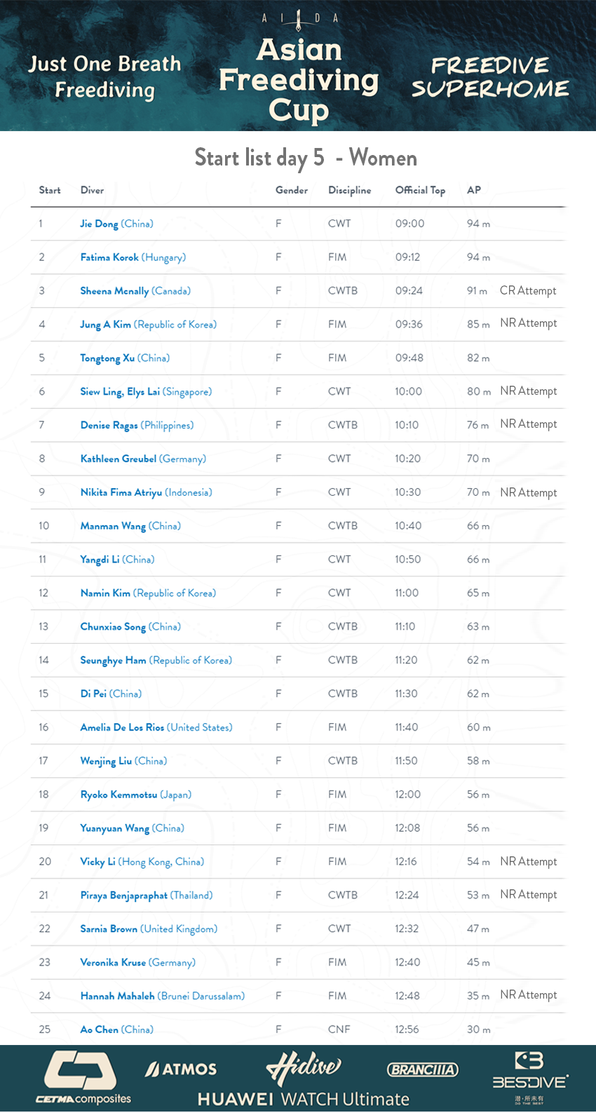 Uncategorized Start list for day five of AIDA Asian Freediving Cup 2023 Posted by Asian Freediving Cup on June 13, 2023June 14, 2023 Photo by Pablo. Sponsors of AIDA Asian Freediving cup 2023: CETMA Composites BESTDIVE HIDIVE (China) Huawei WATCH Ultimate ATMOS BRANCIIIA Share this: Click to share on X (Opens in new window) X Click to share on Facebook (Opens in new window) Facebook Like Loading...
