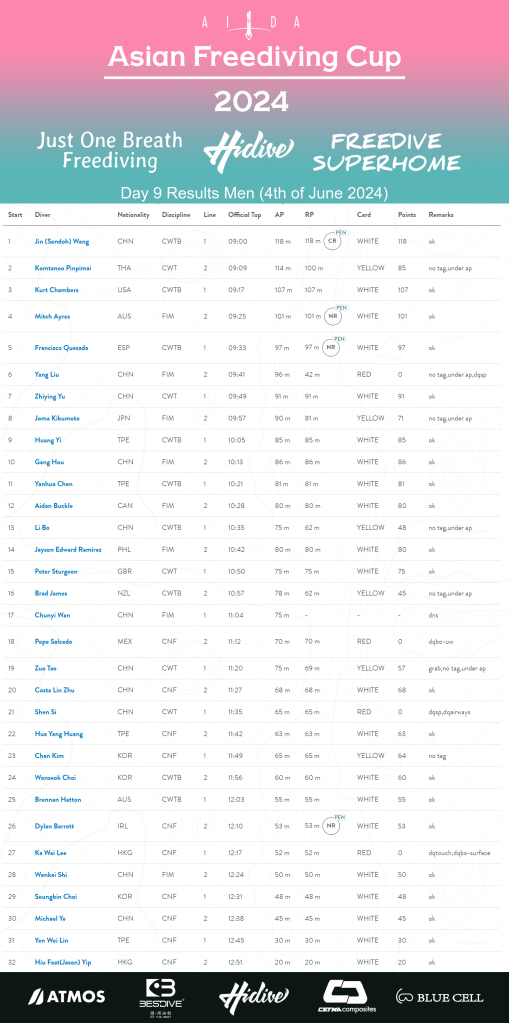 This is the results from the last day of AIDA Asian Freediving Cup 2024. Results and overall rankings will be posted, but not today. We need to keep some surprises to the closing party ![]()