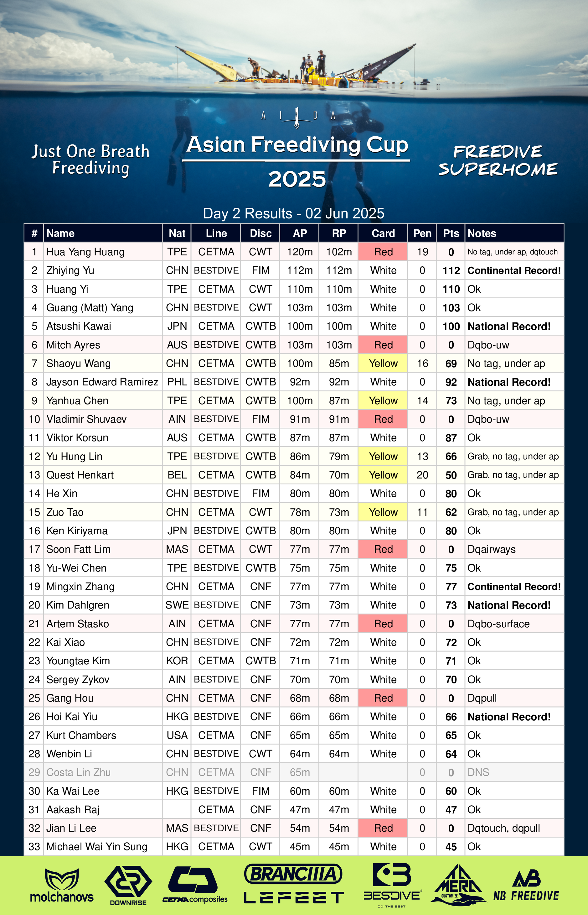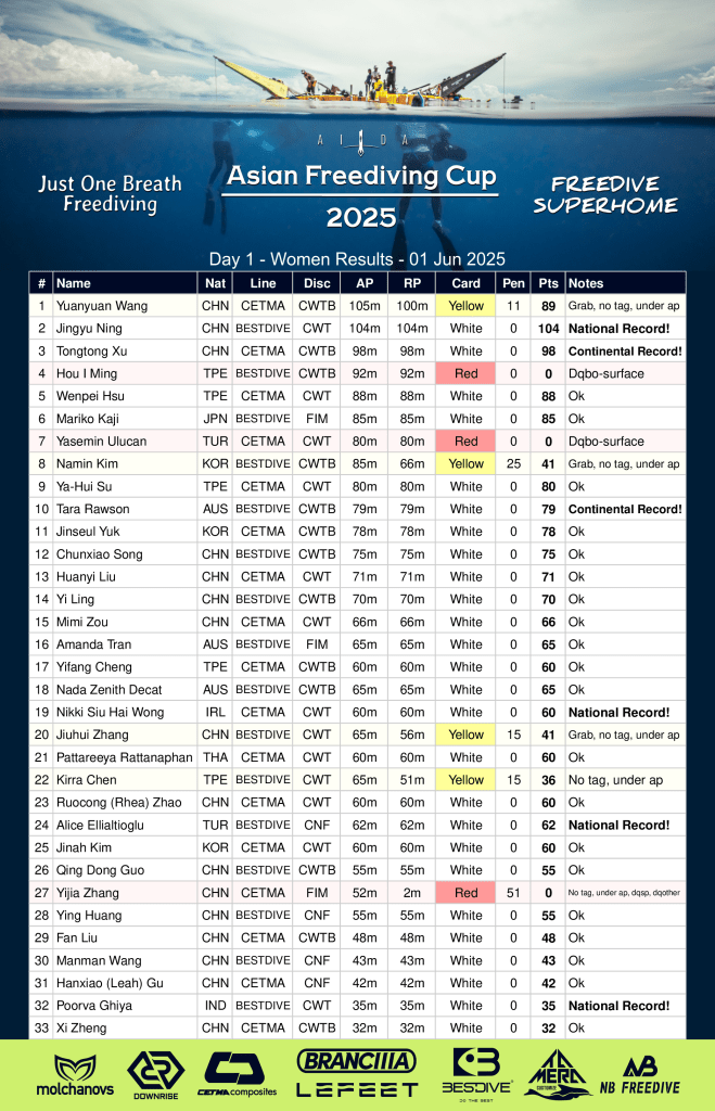 AIDA Asian Freediving Cup 2025 has started, and what a start! Two days in beautiful calm water, with equally beautiful dives.